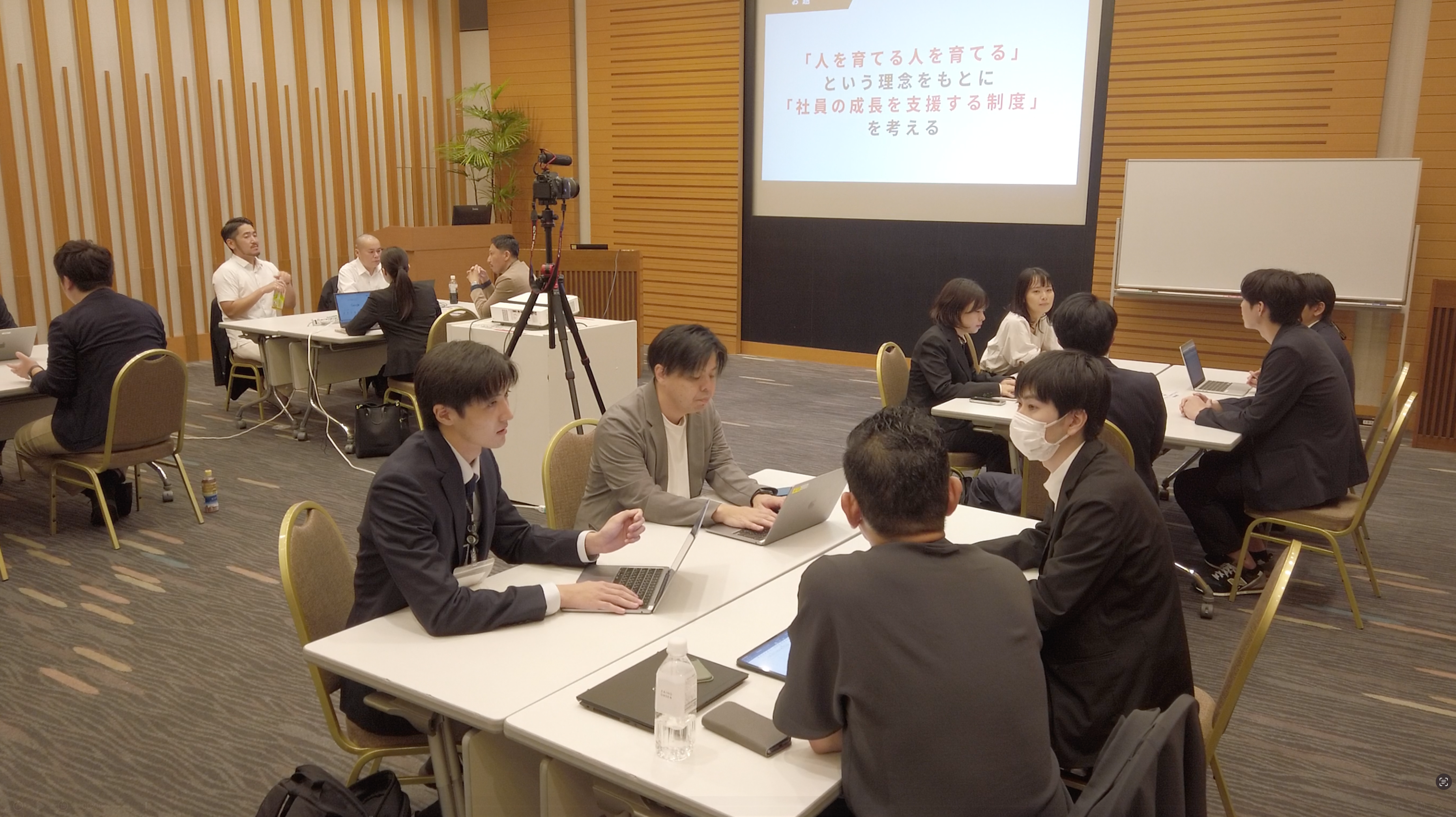 当社の経営理念である「人を育てられる人を育てる」をテーマに、「社員の成長を支援する制度」について議論し、各グループが発表を行いました。